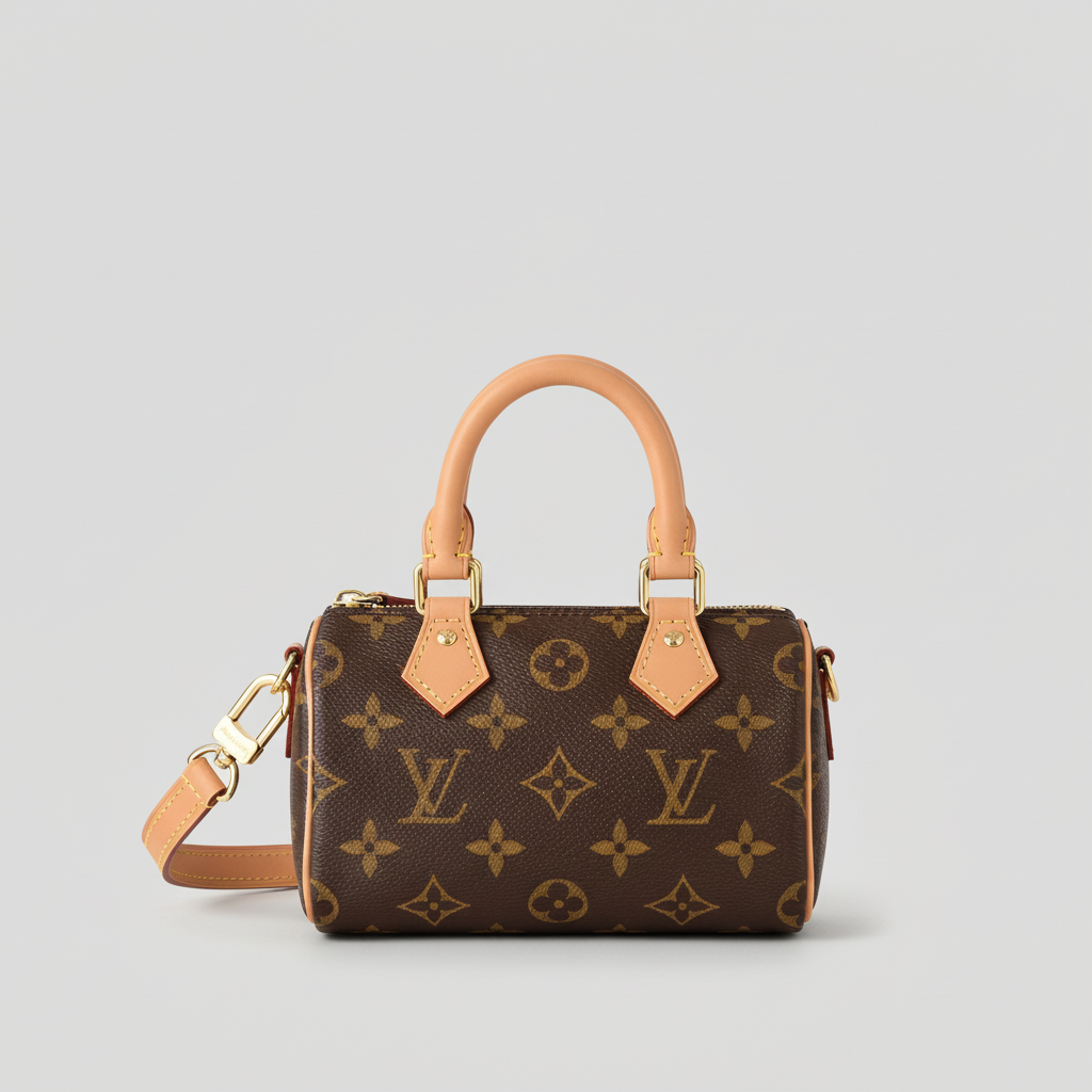 L\Vsac à Main Mini Boston à Motif Monogrammé – Marron avec Détails Camel